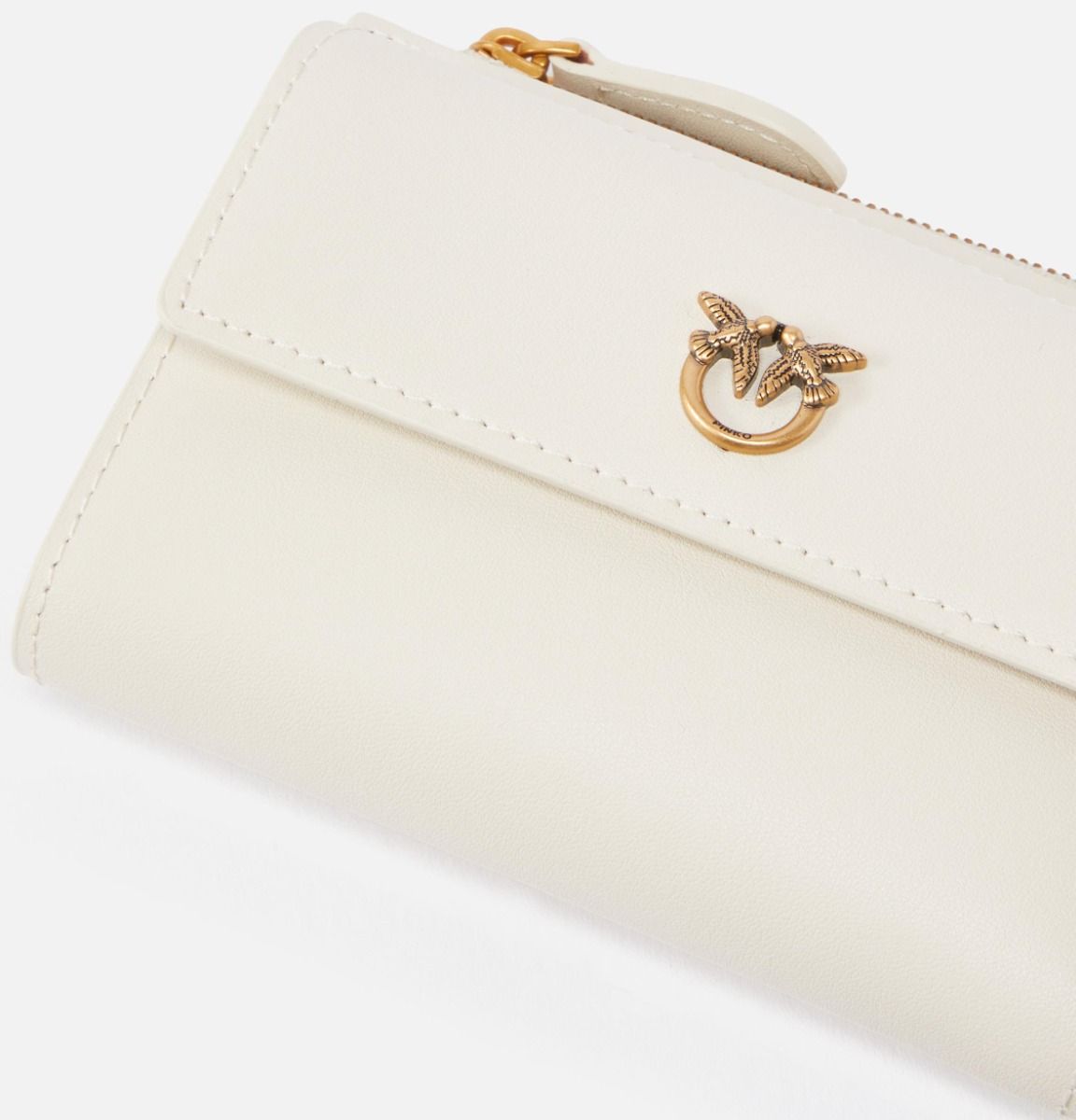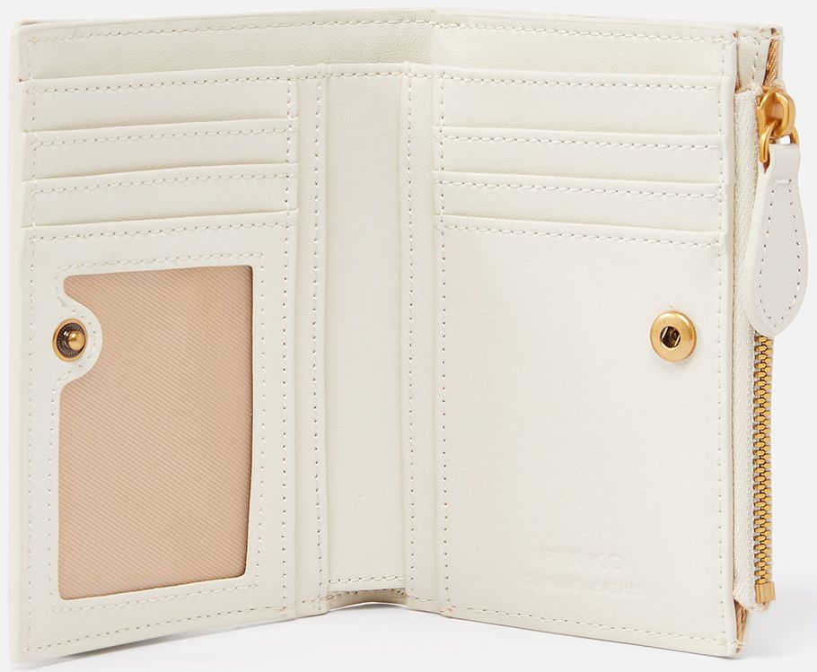 Portafoglio medio di forma quadrata in morbida pelle mano seta personalizzato con placchetta Love Birds Diamond Cut. L'interno è foderato in pelle vitello. Chiusura con bottone a pressione.