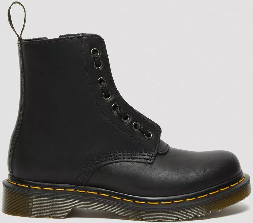Il 1460 Pascal è un modello a 8 occhielli basato sull'originale stivale Dr. Martens. Il suo iconico DNA è così composto: 8 occhielli, suola con cuscinetto d'aria e bordi scanalati, cuciture gialle sul guardolo e fettuccia posteriore. L'unica differenza ? Nessuna bordatura sul collo. Questa stagione lo stivale guadagna un ulteriore dettaglio estetico che ne agevola anche la calzata: una cerniera anteriore.