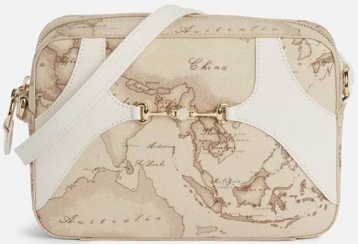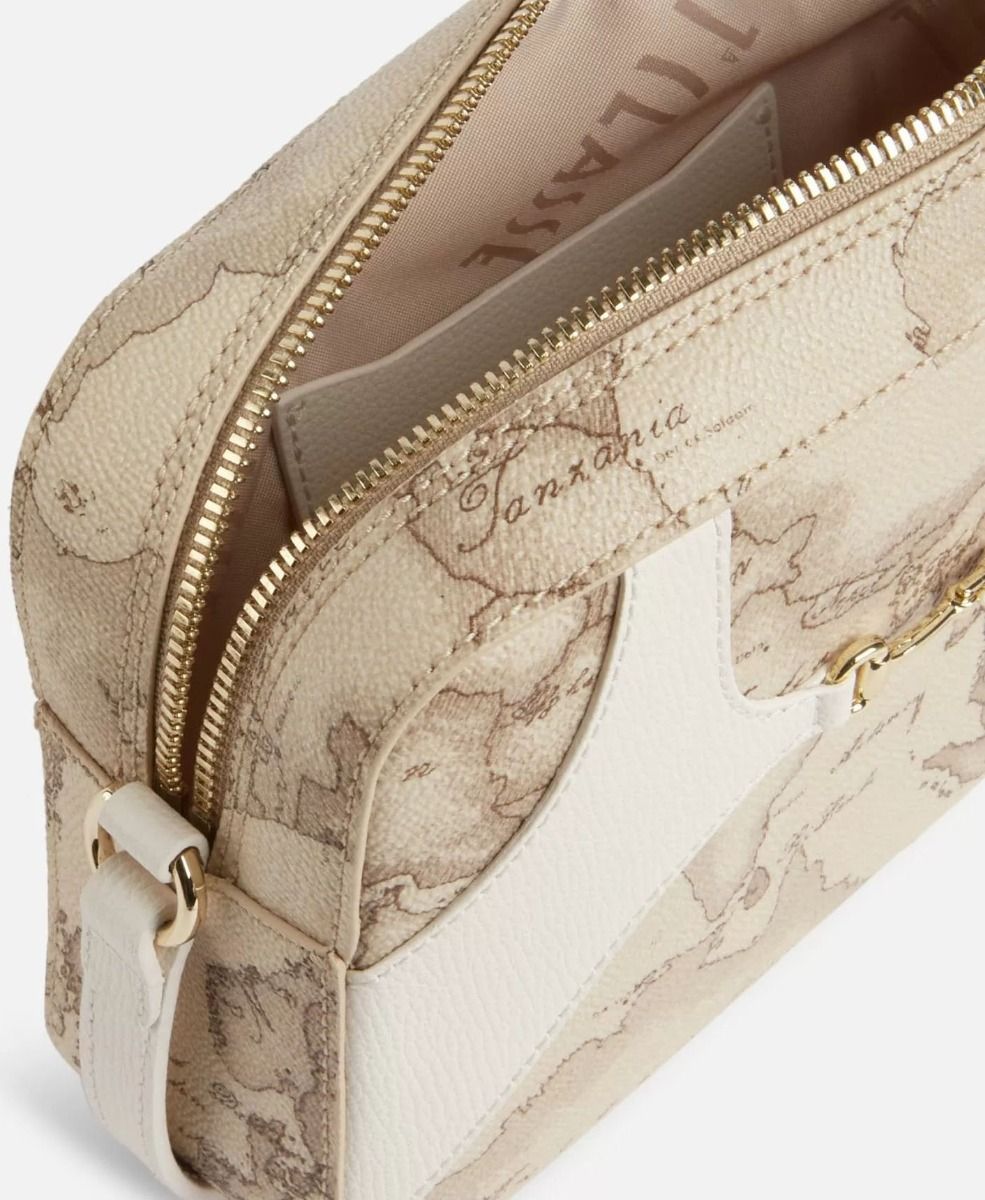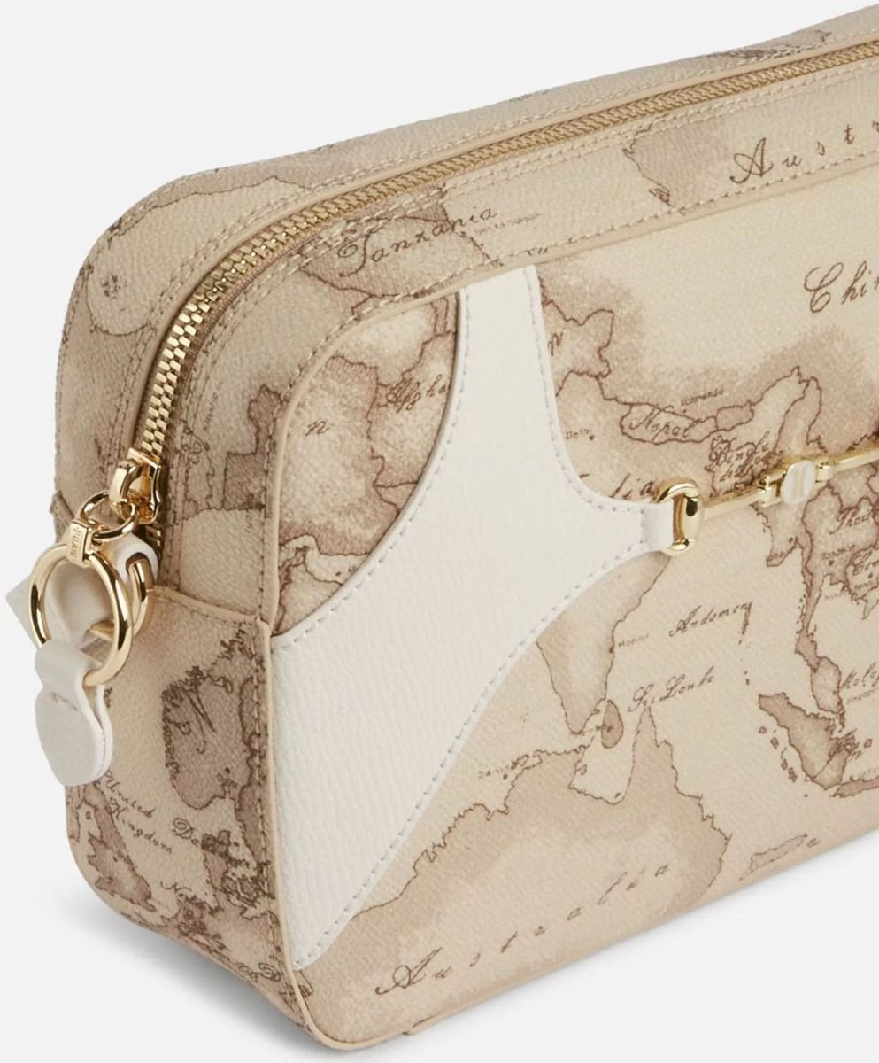 Tracollina reporter in tessuto Geo Safari, caratterizzata dai due inserti in pelle granata fine sul quadrante frontale, uniti dal morsetto dorato con logo 1C smaltato in tono. Pratica e funzionale grazie alla tracolla regolabile, è un accessorio dall'attitude chic e femminile, perfetta nel quotidiano per chi preferisce accessori dai volumi intermedi.
