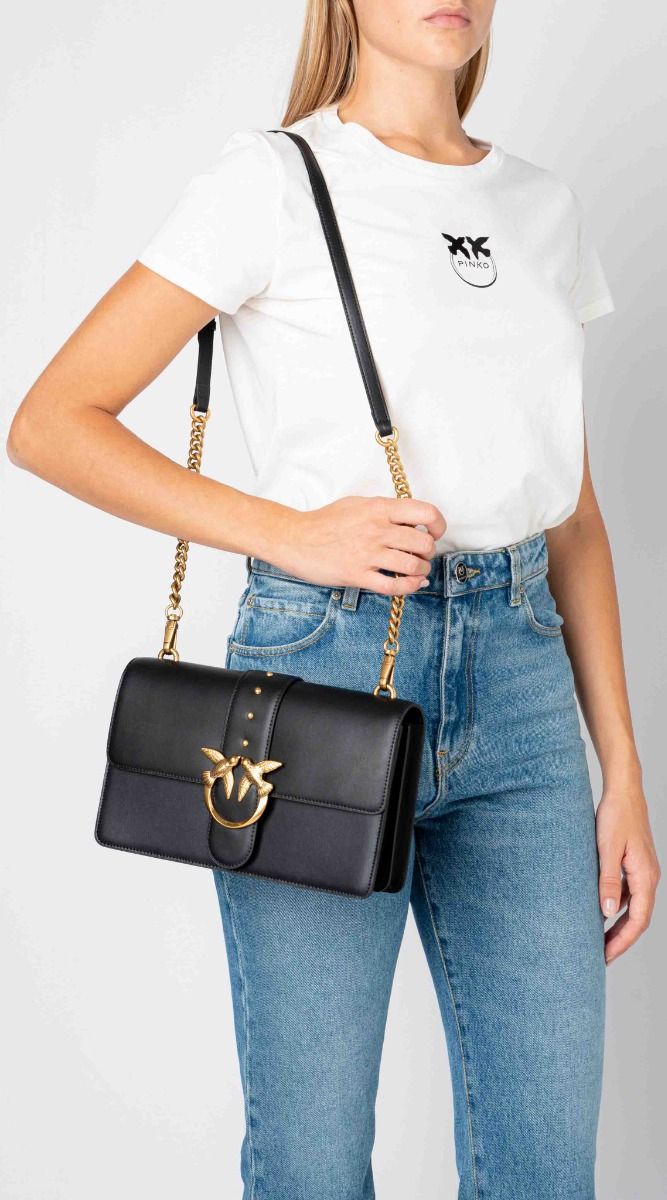 Classic Love Bag Icon in morbida pelle mano seta. La chiusura con baccello in pelle e borchie è completata dall'iconica fibbia in metallo Love Birds Diamond Cut in metallo. L'interno è foderato in microfibra e comprende tramezza chiusa con zip e tasca a parete in pelle. La tracolla rimovibile combina la classica catena rotonda al pratico spallaccio in pelle regolabile. Verifica l'autenticità della tua Love Bag utilizzando lo speciale chip NFC oppure il codice Certilogo stampato sull'apposito cartellino a forma di cuore.